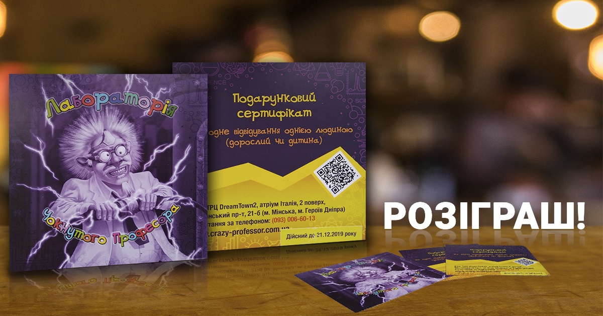 Дети в городе.Киев дарят сертификат в Лабораторию Чокнутого профессора.